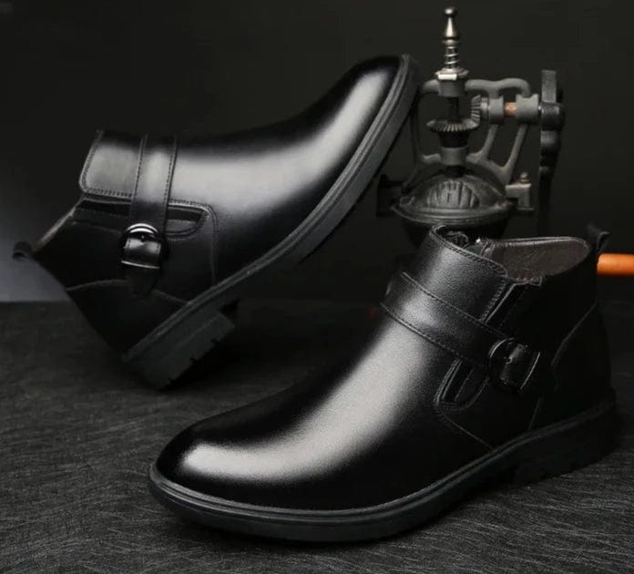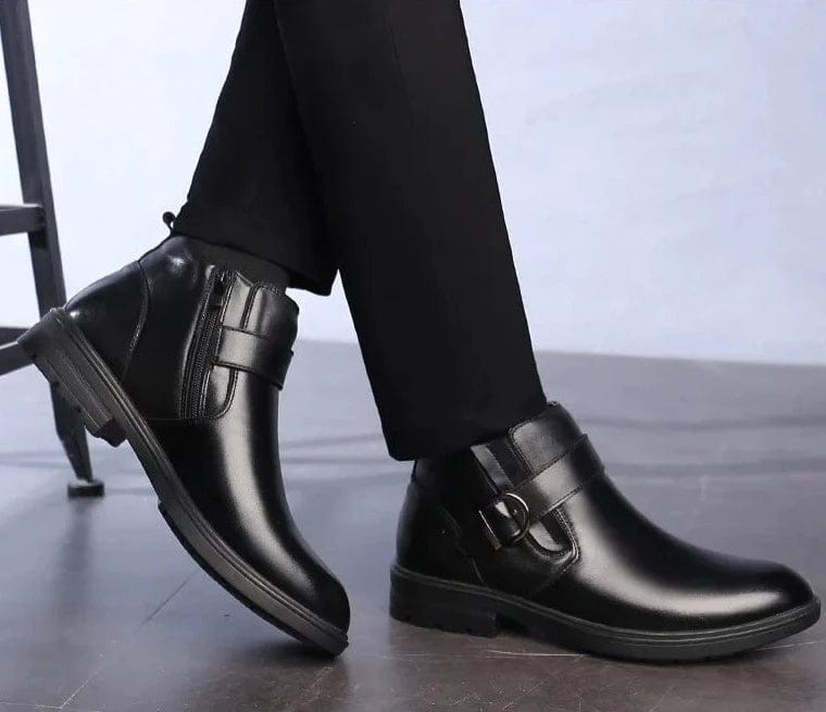 מגפוני עור "לוצ'י מונטנה" לגברים - שילוב של סגנון ואיכות. מגפונים אלו עשויים מעור איכותי, ומתהדרים בבוהן מחודדת ובעקב נמוך עם רוכסן צד ואבזם מעוצב.