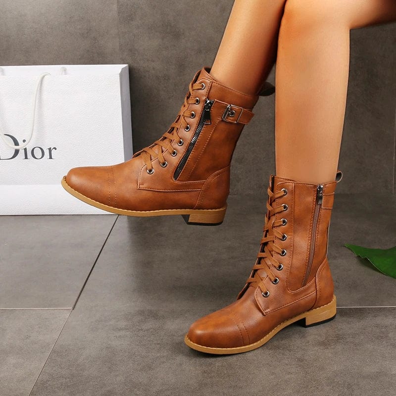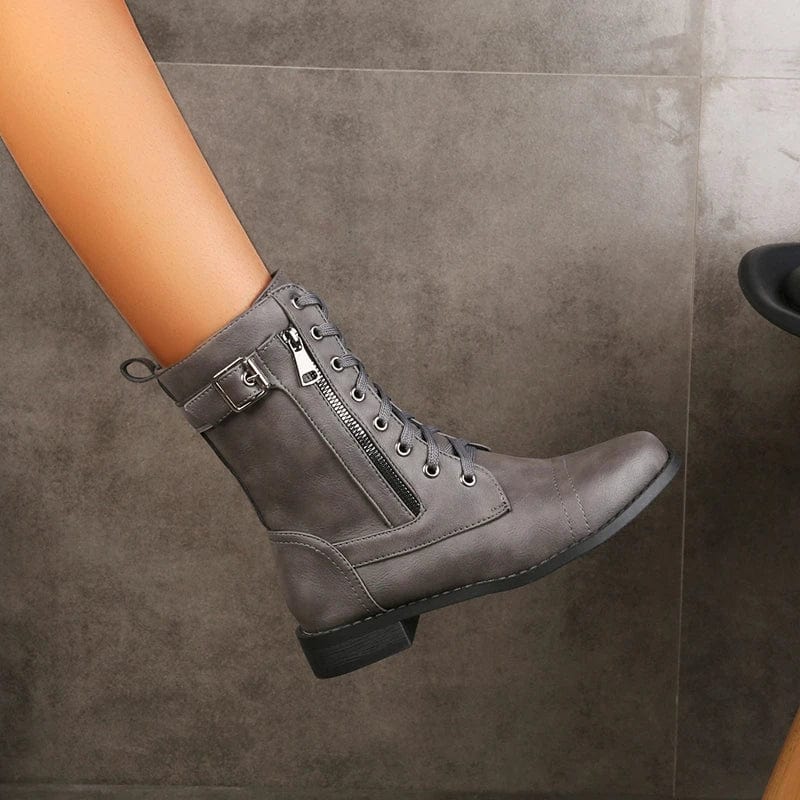 מגפי הנשים החדשות "ריצ'ל מוריס" בעיצוב איטלקי אותנטי משלבות אופנה מודרנית ונוחות. כוללים רוכסן צד ללבישה קלה ואצבע מחודדת. המגפיים עשויים מעור מלאכותי איכותי בצבע אחיד עם שרוכים ועקב שמנמן ואופנתי. מושלמים לעונת האביב/סתיו.